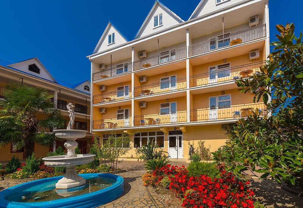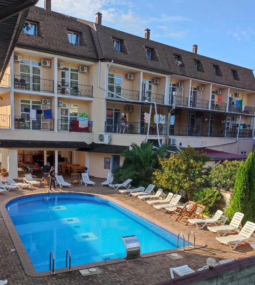 В номерах душ (ванна), кондиционер. На территории находятся 2 открытых бассейна (взрослый и детский) с подогреваемой водой, а также есть уютный зеленый дворик с беседками и субтропической растительностью.